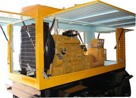 青县柴油发电机组/移动柴油发电机组设计独具创新,机动性高、重心低、制动安全、制造精良、外形美观。 青县拖车车架采用槽梁焊接成框架结构,节点选择合理、强度高、刚性好;同时装有钢板弹簧悬架结构;拖车采用高度可调节插销式牵引架,适用于各种高度牵引车;采用圆形钢管焊接直通式车轴,结构紧凑,安全可靠;车架四角设有机械式支撑装置,配备惯性行车制动、驻车制动和脱离应急制动,确保机组在各种状况下的安全;车架前端设有支撑轮,具备承受机组垂直载荷的功能的同时还具备导向功能;整车配备转向和刹车指示灯,同时装有尾灯标准插头